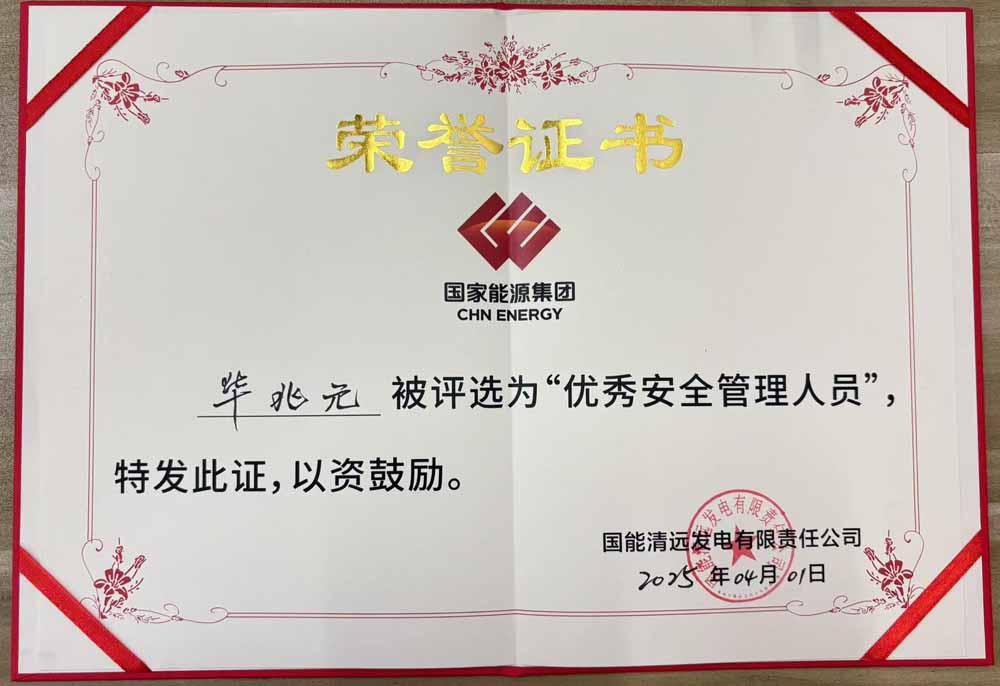 在2025年04月08日國能清遠電廠召開的《2025年第二次安全生產委員會暨生態(tài)環(huán)境保護(擴大)會議》和2025年07月11日國能清遠電廠召開的《2025年第三次安委會暨生態(tài)環(huán)保、職業(yè)健康、交通委員會》的兩次安委會上,畢兆元做為清遠項目的安全主管榮獲2025年第一季度“優(yōu)秀安全管理人員”和第二季度“優(yōu)秀安全管理人員”稱號及榮譽證書。