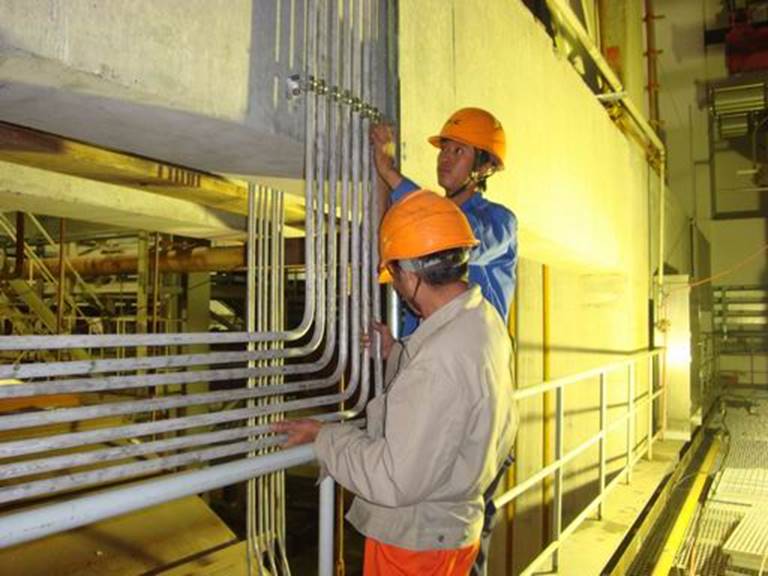 我公司承建的華能上海石洞口二電廠二期660MW施工現(xiàn)場目前已經(jīng)進入安裝高峰期,鍋爐酸洗剛剛結(jié)束,業(yè)主和甲方就已經(jīng)把臨沖管和整套啟動的工期排定。目前,鍋爐熱工安裝已經(jīng)到了最后的沖刺階段,為趕進度,員工們連日來加班加點,甚至?xí)円箍喔伞9と藗冸m然疲勞,但是,看著他們安裝的每一個系統(tǒng)逐步投入使用,干勁兒倍增,爭取以最快的速度,高質(zhì)量的完成剩余工作量。