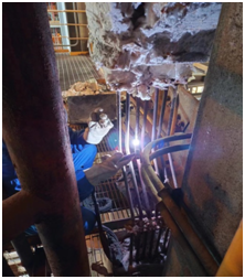 經(jīng)過檢查發(fā)現(xiàn)#1爐右側(cè)外置床隔墻管及水冷壁管發(fā)生泄漏,合計(jì)需要更換管道34根、澆注料發(fā)生大面積脫落亦需要修復(fù)。此項(xiàng)工作要求在十天內(nèi)完成、同時(shí)還涉及#1爐其它零散的修復(fù)任務(wù)也需要同時(shí)完成,不巧的是有一批休假人員剛剛回國(guó)?,F(xiàn)在面臨的情況就是時(shí)間緊、任務(wù)重、人員短缺,對(duì)我們的修復(fù)工作非常不利。但現(xiàn)場(chǎng)全體龍宇人員沒有任何退縮,大家全力以赴、迎難而上。通過周密計(jì)劃、合理安排,如期完成業(yè)主交給的檢修任務(wù)。并且所有的施工任務(wù)經(jīng)業(yè)主驗(yàn)收全部合格。再一次獲得業(yè)主贊賞。