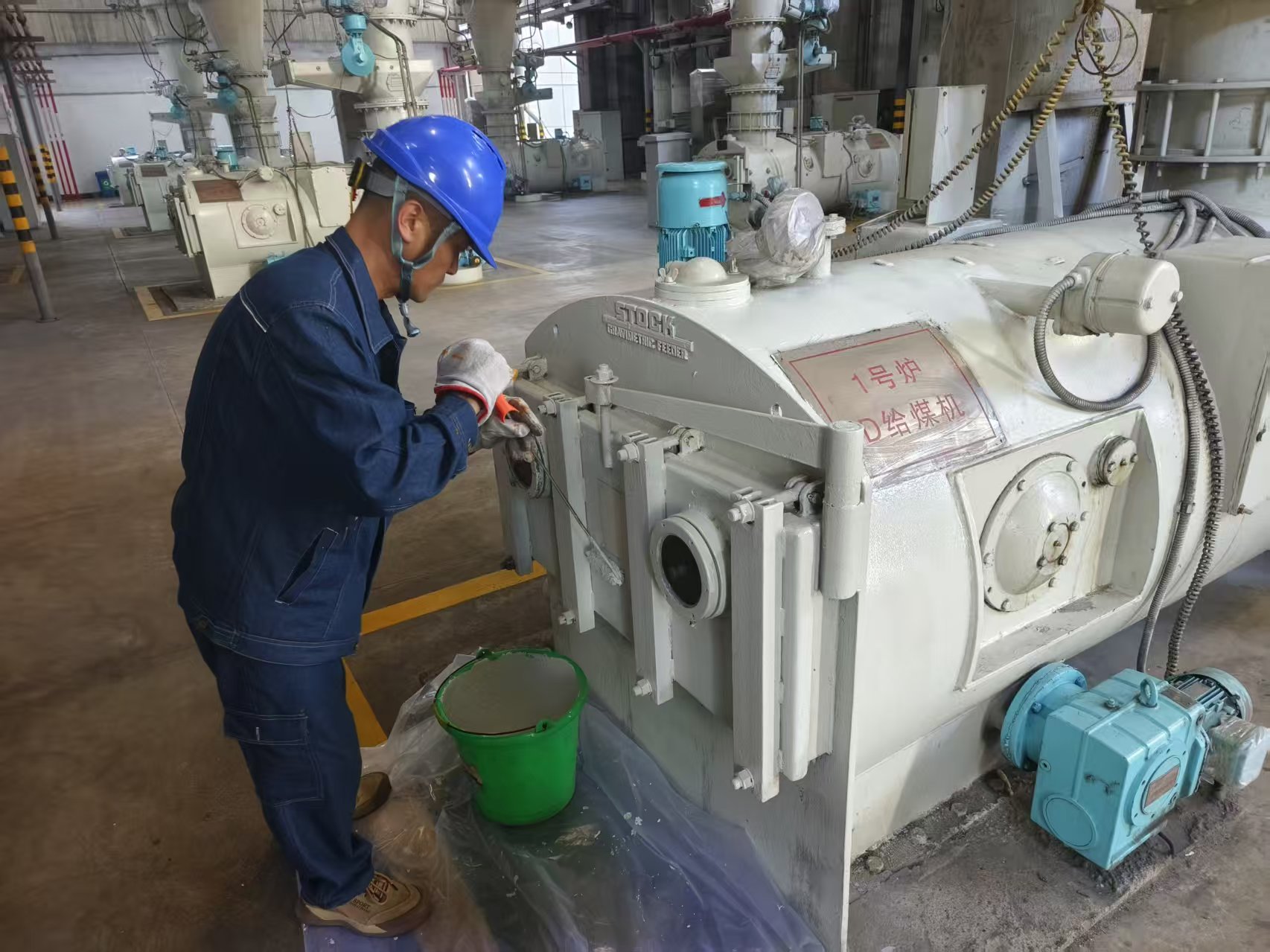 陽(yáng)光下,剛剛完成刷漆的磨煤機(jī)煥然一新,銀灰色的漆面在光照下閃閃發(fā)亮。這些“穿上新衣”的設(shè)備不僅提升了設(shè)備使用壽命,也成為現(xiàn)場(chǎng)一道亮麗的風(fēng)景線。
